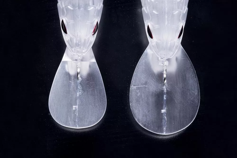 L'ampia paletta, con la sua grande superficie di raccolta dell'acqua, impedisce al wobbler di "perdere il ritmo", anche in correnti deboli. Allo stesso tempo, per evitare lo "sbandamento" e il superfluo ondeggiamento su e giù in correnti forti, l'angolo della paletta è piatto, permettendo all'esca di "domare" l'acqua e mantenere il suo movimento di nuoto di qualità premium.