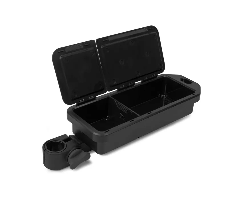 Un vassoio compatto di piccole dimensioni con tetto impermeabile, adatto per riporre piccoli accessori, bevande e persino il telefono cellulare. Durante la progettazione, uno dei punti chiave era che si adattasse perfettamente tra le due gambe del panieri da pesca e un vassoio laterale Venta-Lite.
