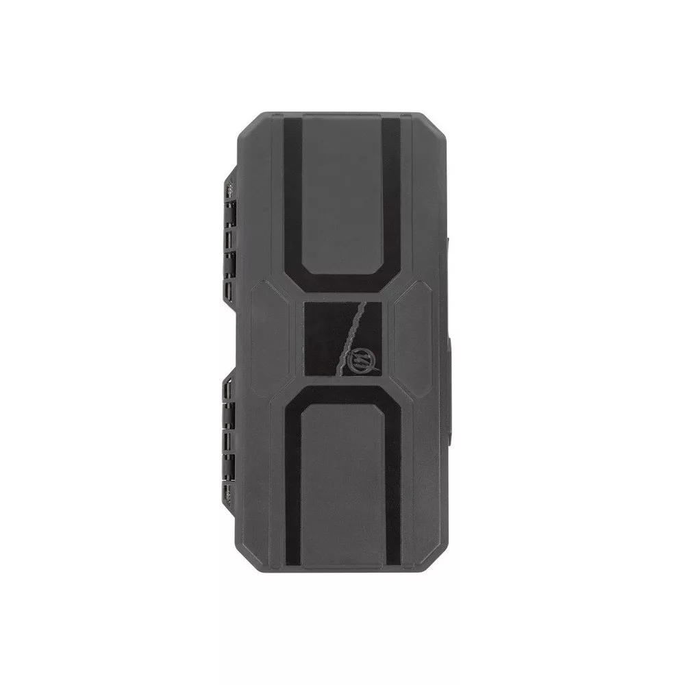 La pratica chiusura magnetica e le cinghie angolari rinforzate assicurano un'apertura e una chiusura facili e veloci, preservando la lunga durata della scatola. Il sistema interno di perni, intelligentemente progettato, permette il fissaggio di terminali lunghi 10 cm, 12,5 cm e 15 cm, in modo che siano sempre riposti in modo ordinato e sicuro. Una delle file di perni è leggermente più alta per facilitare l'annodamento dei terminali, eliminando la necessità di uno strumento separato per un'annodatura precisa. I perni hanno una "barba" aumentata, in modo che i terminali rimangano saldamente in posizione e non si stacchino accidentalmente.