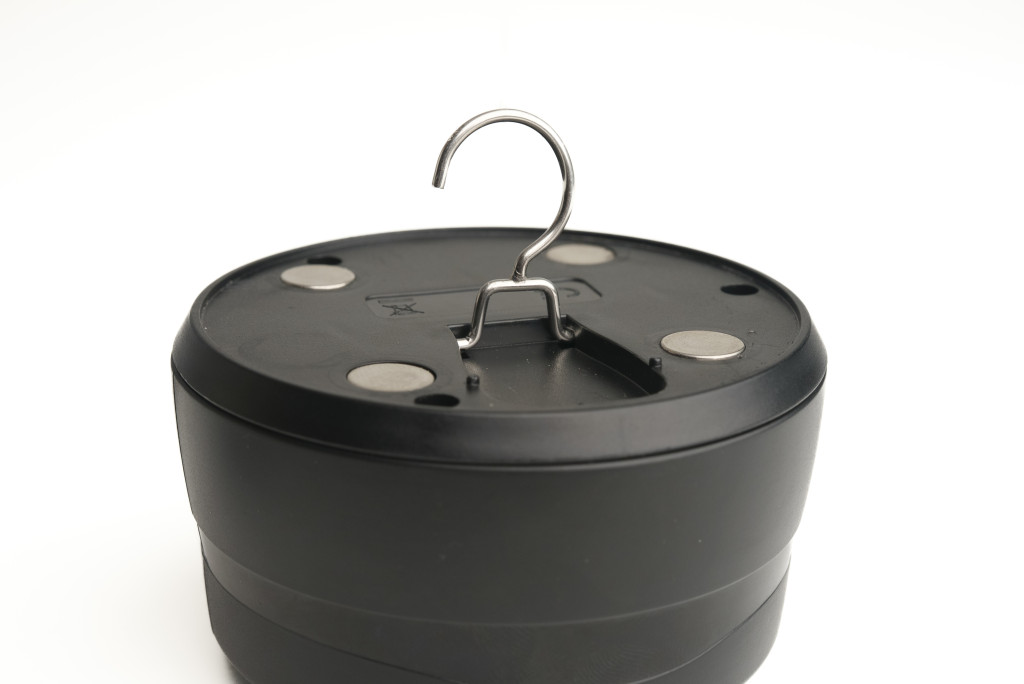Il corpo della lampada è realizzato in plastica composita resistente agli urti e alle intemperie, che resiste all'umidità del bordo dell'acqua e alle cadute accidentali. Grazie al suo design compatto, occupa uno spazio minimo nell'attrezzatura, ma è comunque in grado di illuminare una vasta area all'interno della tenda. Le dimensioni del corpo della lampada sono state ottimizzate per adattarsi anche a una borsa più piccola, e il suo peso è sufficientemente leggero da non far cedere il telo della tenda durante il fissaggio magnetico. L'elettronica interna è composta da componenti di alta qualità, garantendo una connessione radio senza interferenze con i segnalatori.