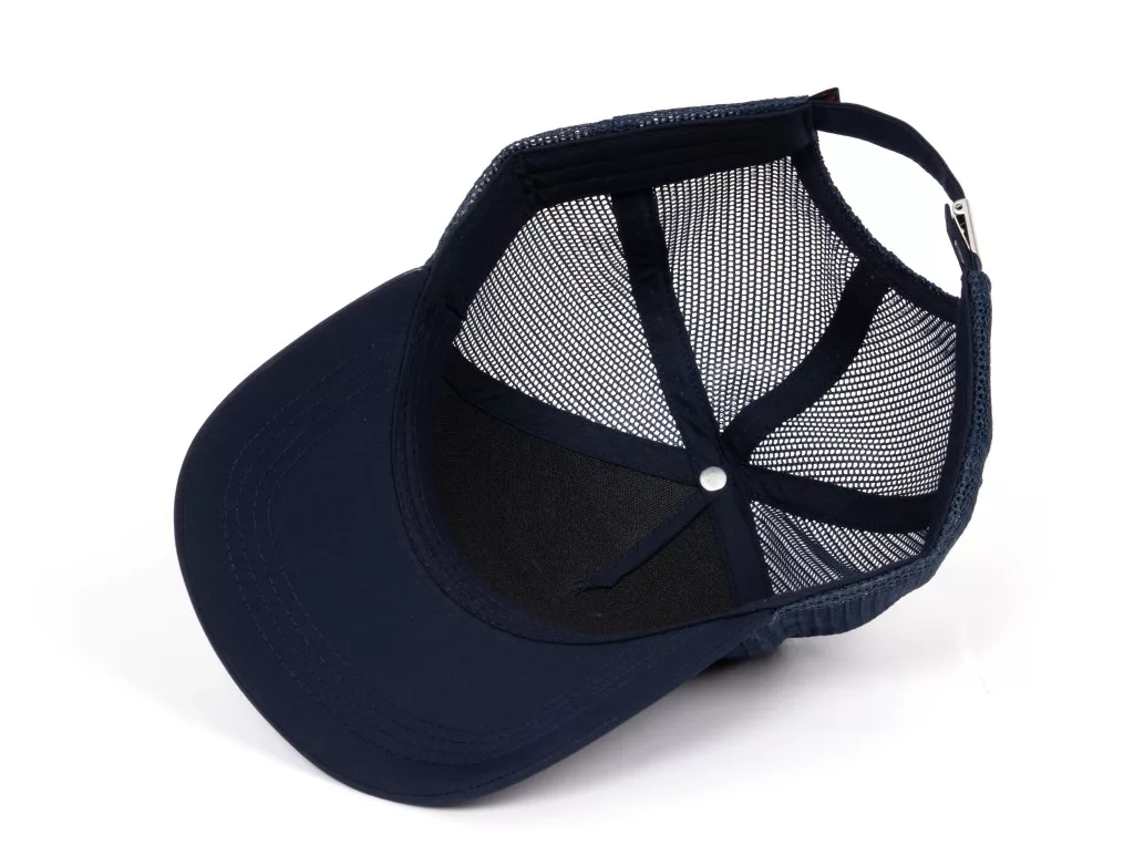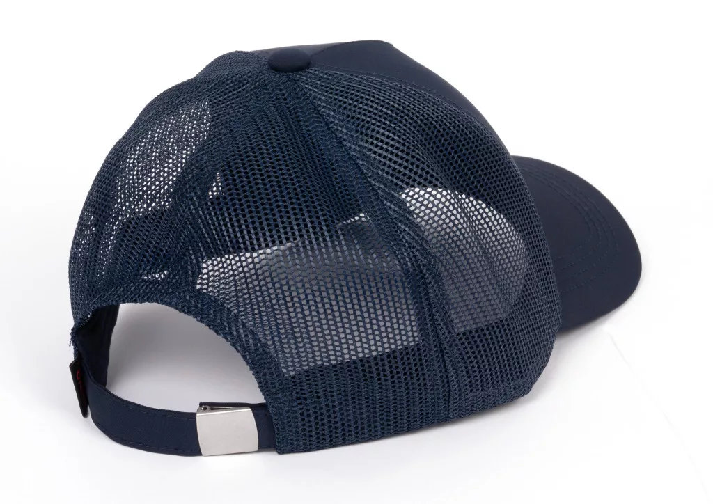 La parte anteriore del cappello è realizzata in tessuto robusto e che mantiene bene la forma, mentre il pannello posteriore è in materiale a rete traspirante. Il cinturino con fibbia in metallo permette una regolazione precisa della taglia, rendendo il cappello di taglia universale e ampiamente utilizzabile.