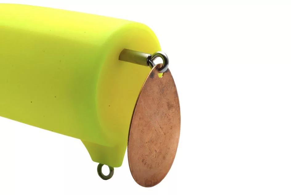 Per il movimento ritmico del corpo pesante del KILLER-D, la piastra frontale in Duraluminio è essenziale. È posizionata con l'angolo giusto per conferire un leggero movimento simile a un crankbait, mantenendo al contempo una distanza perfetta tra la paletta e la superficie dell'acqua. Il suono metallico è completato da un leggero suono aggiuntivo sordo, rendendo l'effetto complessivo davvero attraente.