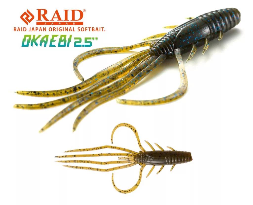 Il pacchetto include: Raid Oka Ebi 6,3cm 001 Green Pumpkin Seed Esca in Plastica 8pz
