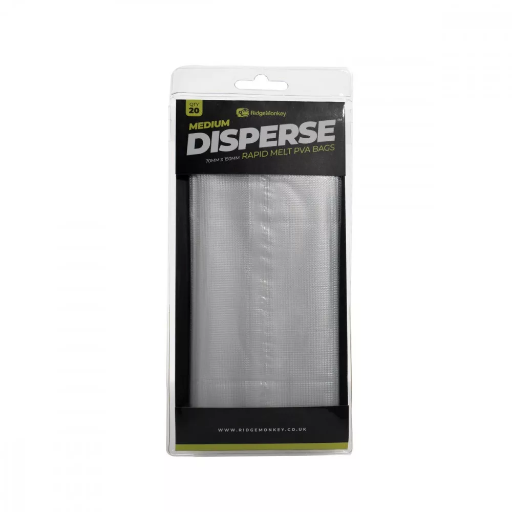 RidgeMonkey Disperse Bustina PVA - Le bustine PVA Disperse di RidgeMonkey sono una delle novità 2020 di RidgeMonkey. Il loro materiale è composto da uno strato di pellicola goffrata di alta qualità, extra resistente. Si dissolvono rapidamente e lasciano un residuo minimo di materiale PVA, non destando sospetti nemmeno nelle carpe più caute. Sono disponibili in diverse misure, il che le rende adatte sia per l'alimentazione concentrata attorno all'amo più piccolo che per l'introduzione di pellet di dimensioni maggiori.