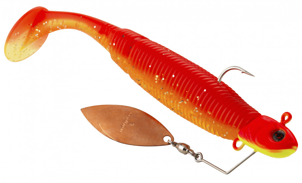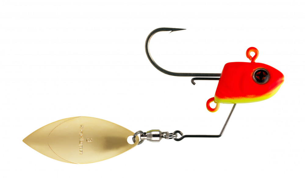 Lo SPINHEAD aumenta ulteriormente l'efficacia delle nostre esche in plastica, contribuendo al successo. La forma della testa del jig è stata progettata per garantire una stabilità sufficiente e favorire il movimento delle esche in plastica, senza ostacolarlo in alcun modo! Sotto la testa del jig SPINHEAD c'è un ulteriore occhiello, che permette l'uso di pesci di gomma più grandi, e la possibilità di 'sbattere'! Infine, la sorpresa: sulla testa del jig SPINHEAD si trova anche uno spinner, posizionato nella parte inferiore, a differenza dei soliti spinnerbait. Questa posizione insolita apre una nuova dimensione, alla quale i pesci predatori hanno reagito molto bene durante i test! Naturalmente, non mancano le varianti di colore catturanti, e lo SPINHEAD ha anche ricevuto i leggendari occhi SAKUEYES, che si sono già dimostrati efficaci in numerosi artificiali.