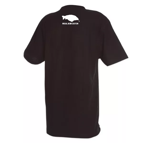 T-shirt a girocollo SBS nera di alta qualità, serie limitata, con logo SBS bianco e nome di dominio (www.sbsbaits.com) sul davanti, e logo e scritta Real Big Catch bianchi sul retro!