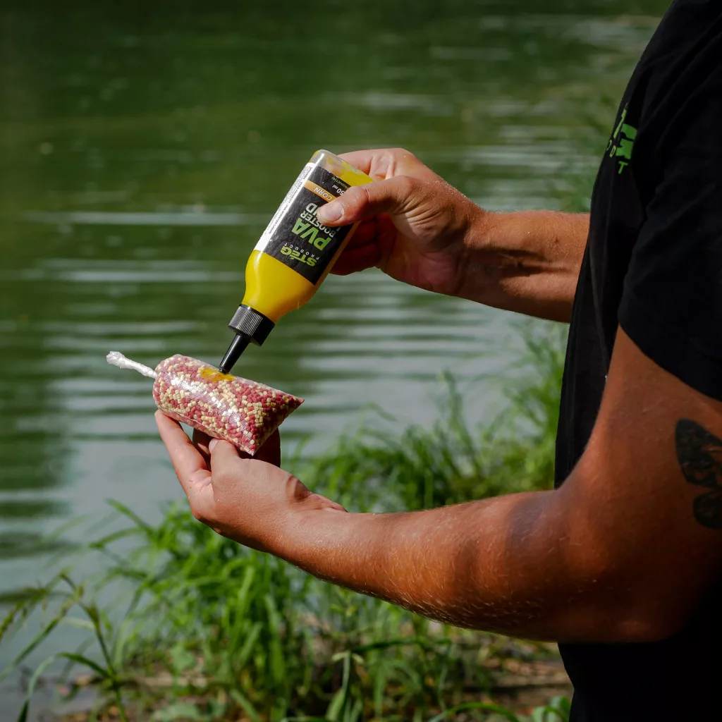 Additivo sviluppato per la pesca con sacchetti PVA. Con il suo utilizzo, possiamo aumentare notevolmente l'effetto attrattivo dei materiali riempiti nella sacca. Lo STÉG PVA LIQUID non è solo un semplice aroma, ma ha anche un alto valore nutritivo, oltre al suo sapore delizioso.