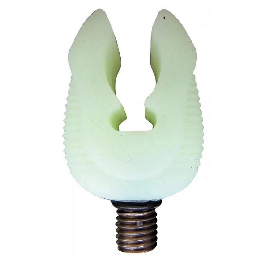 Il corpo della forcella è realizzato in gomma flessibile e resistente, che non danneggia la superficie della canna, ma allo stesso tempo fornisce una presa sicura. Grazie alla sua proprietà fosforescente, la forcella si carica alla luce e poi si illumina leggermente al buio, rendendola facile da trovare e ben visibile sulla riva. L'attacco filettato standard è compatibile con la maggior parte dei picchetti e portacanne, rendendola rapida e semplice da usare.
