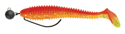 Lo SWIMY GALFION FAT SHAD JIG è una gomma dalla forma classica con corpo piatto, montata con una testa chebu, realizzata in materiale estremamente morbido ma allo stesso tempo resistente. Per renderlo più catturante, è stato aromatizzato nella massa e persino impregnato con diversi attrattori (sale, aroma di gambero), in modo che il predatore lo trattenga più a lungo in bocca per una corretta allamata, prima di rendersi conto dell'inganno.