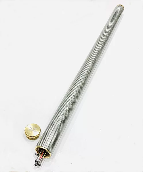 Porta-cimini feeder in carbonio. Design unico e raffinato, tubo realizzato in materiale carbonio multistrato ad alta resistenza per la conservazione sicura dei cimini delle canne da feeder, con tappi terminali metallici filettati su entrambe le estremità.