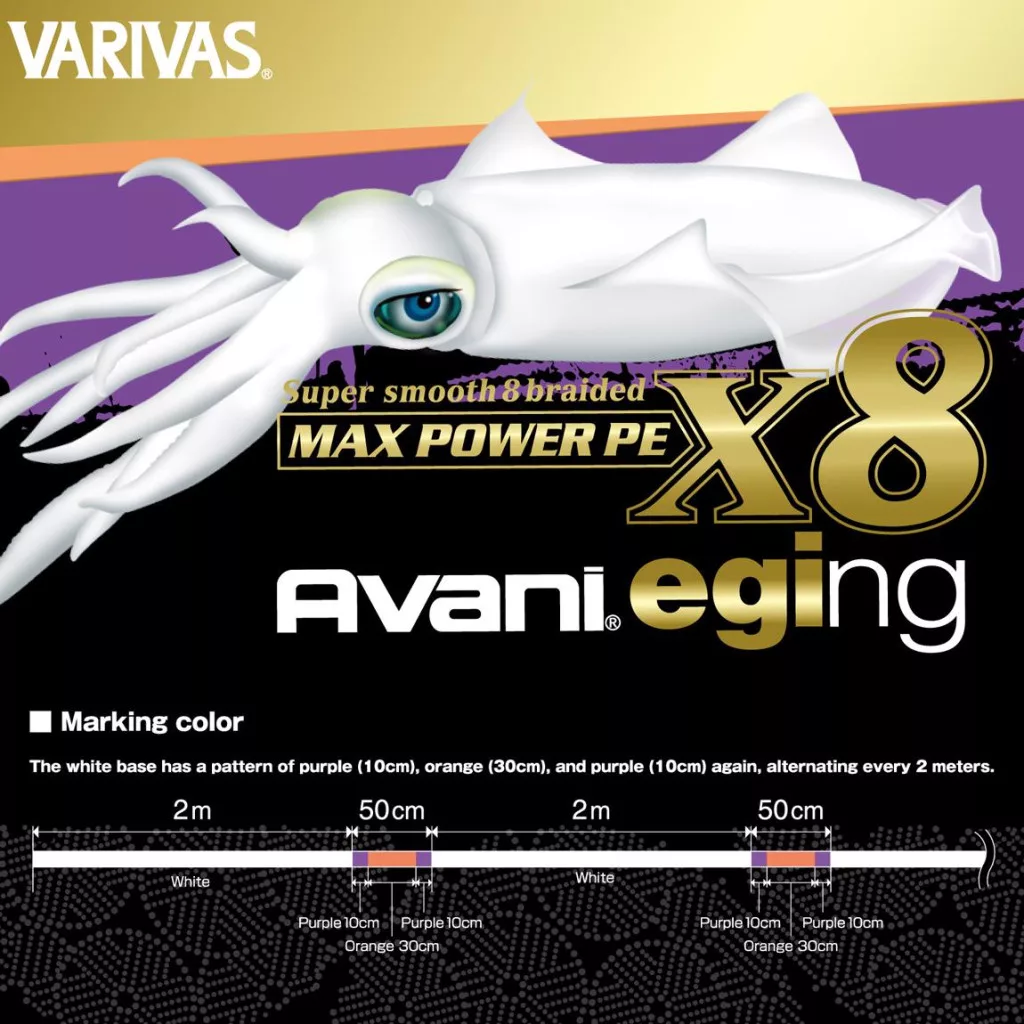 Varivas Avani Eging Max Power PE X8 150m #0,8 16,7lb White Orange Marking Trecciato Principale
