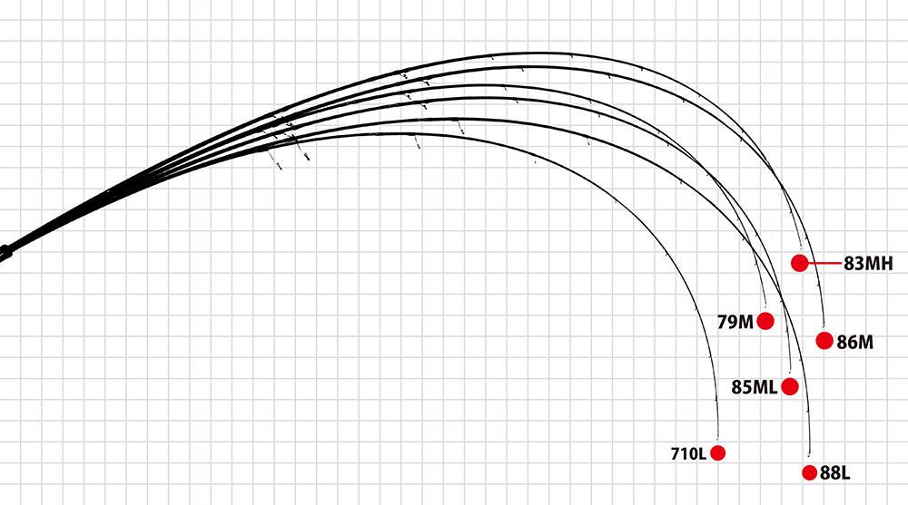 Il 79M è un modello con un fusto raffinato che massimizza i vantaggi della lunghezza corta. Offre un'eccellente maneggevolezza e reattività, che solo un fusto corto può fornire, pur offrendo prestazioni di lancio lunghe e un'esperienza di lancio piacevole.